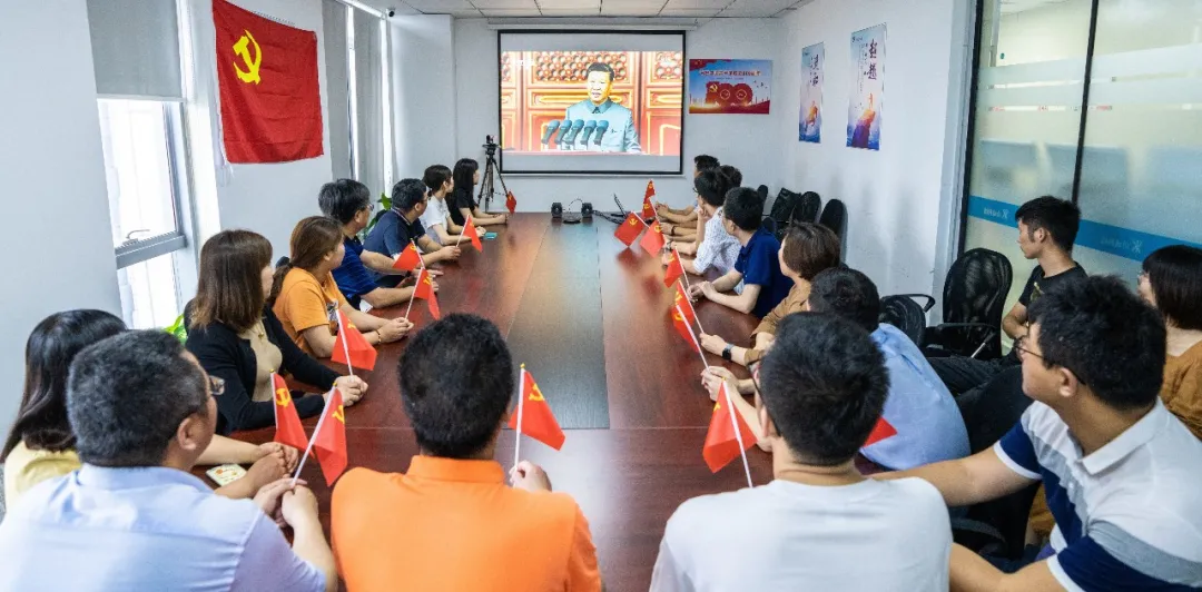 7月1日上午,中國共產黨成立100周年慶祝大會在北京天安門廣場隆重舉行。中共中央總書記、國家主席、中央軍委主席習近平發表重要講話。功成科技組織全體黨員及員工集中收看了大會直播實況。